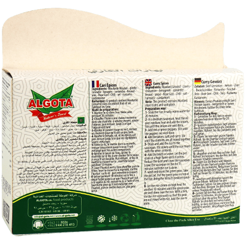 بهارات الكاري من الغوطة خليط متوازن يمنح اللحوم والدجاج والخضار واليخنات نكهة عطرية دافئة ولوناً ذهبياً شهياً.