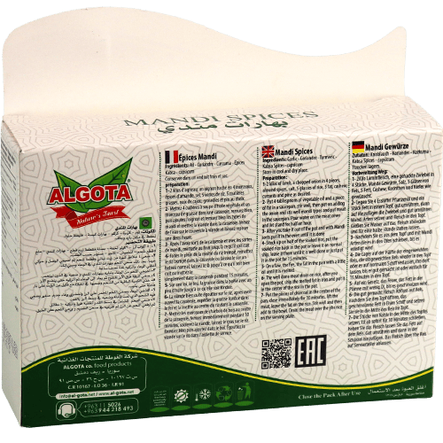 بهارات المندي من الغوطة خلطة تقليدية على الطريقة اليمنية لتتبيل الأرز مع الدجاج أو اللحم، تضفي على طبق المندي رائحة مدخنة ونكهة عميقة مميزة.