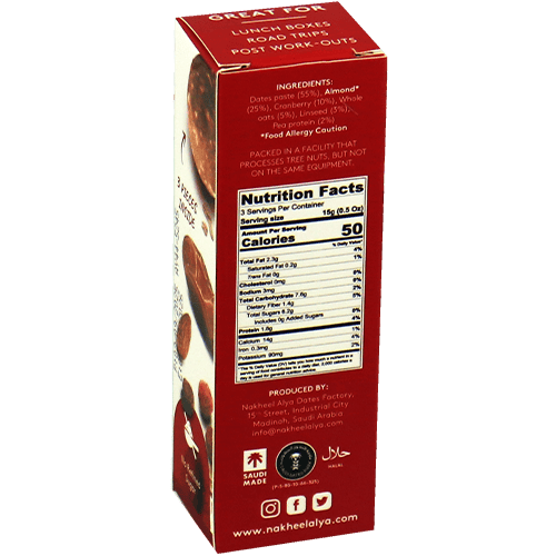 استمتع بوجبة خفيفة صحية تجمع بين اللوز الطازج وعجوة التمر الغنية بالألياف مع لمسة من التوت البري والشوفان الكامل. كرات الطاقة نايلا خيار مثالي للطاقة السريعة والبروتين الطبيعي، مناسبة للنباتيين ولمحبي الأطعمة الصحية. نكهة لذيذة وفوائد غذائية في علبة واحدة.