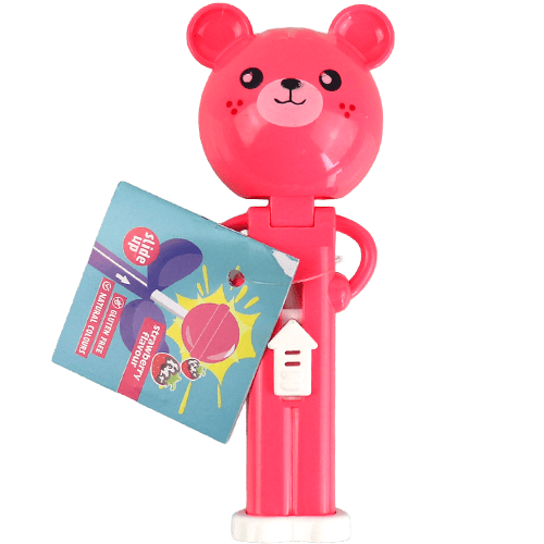 موزّع حلوى لطيف على شكل دب من Teddy Pops بوزن 10غ، مناسب كهدية صغيرة أو ضمن توزيعات الحفلات للأطفال، مع تنبيه أنه غير مناسب لمن هم دون 3 سنوات بسبب القطع الصغيرة.