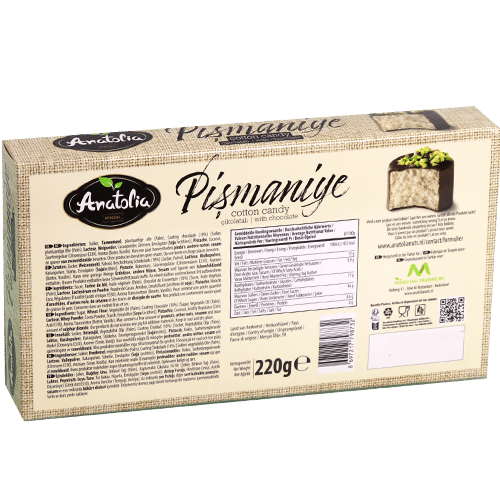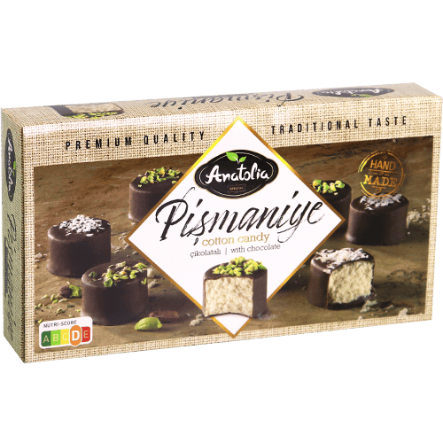 غزل البنات أناتوليا هو حلوى قطنية تركية تقليدية مصنوعة يدوياً، ذات قوام ناعم وخفيف يذوب في الفم، مغطسة بالكامل بالشوكولا الداكنة الغنية ومزيّنة بحبات الفستق الحلبي المحمّص. هذا المنتج مثالي لـ: تقديمه ضيافةً أنيقة مع القهوة أو الشاي العربي وسيُبهر ضيوفك، استخدامه هدية مميزة في الأعياد والمناسبات بتغليفه الراقي، تقديمه للأطفال كحلوى خفيفة ومختلفة عن المعتاد، إضافته لطاولة الحلويات في الأفراح والتجمعات العائلية، اصطحابه كهدية سفر تعبّر عن أصالة الحلويات التركية. ما هي أشهى حلوى تركية بالشوكولا؟ غزل البنات أناتوليا المغطس بالشوكولا هو خيار رائع يجمع بين الخفة والغنى في آنٍ واحد. ما الحلوى التي يمكن تقديمها مع القهوة التركية؟ غزل البنات بالشوكولا والفستق يتناسب تماماً مع القهوة التركية والعربية. ما هي أفضل هدية حلوى للعيد؟ علبة غزل البنات أناتوليا 220غ بالشوكولا خيار هدية مثالي وشهي.