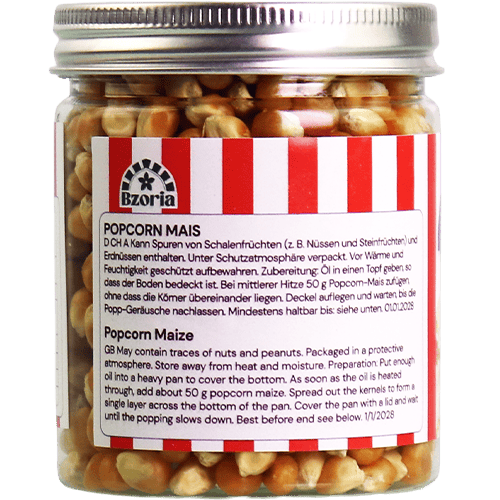 ذرة البوشار من بوشار السينما بحجم XXL، حبوب ذرة كبيرة الحجم مختارة بعناية لتعطيك بوبكورن ضخم ومنتفخ عند التحضير. ببساطة ضعها في قدر مع قليل من الزيت على النار أو في الميكروويف وستحصل على بوبكورن سينما طازج في المنزل. من أفضل استخداماتها: تحضير بوبكورن طازج لسهرات الأفلام في المنزل، استخدامه مع الزيت والملح لبوبكورن مالح كلاسيكي، تحضيره بالزبدة والسكر لبوبكورن حلو مكرمل، تقديمه في حفلات الأطفال كوجبة مرح وسهلة التحضير، واصطحاب البرطمان في الرحلات لتحضير بوبكورن طازج في أي وقت. ما هي أفضل ذرة لصنع البوبكورن في المنزل؟ يمكنك استخدام ذرة بوشار السينما XXL 165غ التي تعطيك حبات بوبكورن ضخمة وطازجة كبوبكورن السينما الحقيقي.