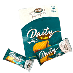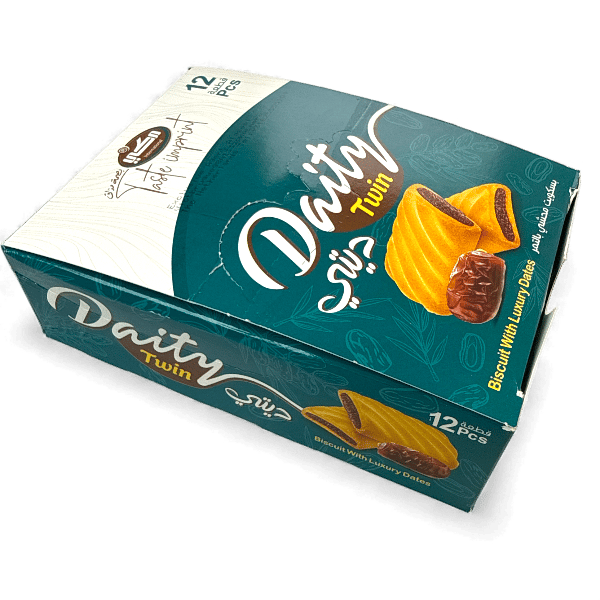 دايتي توين من مكي عبارة عن علبة تتضمن ١٢ قطعة بسكويت محشو بالتمر الفاخر بطبقة خارجية ناعمة، مناسبة كوجبة خفيفة أو للتحلية.