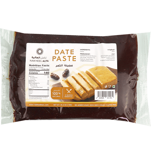 عجينة تمر ناعمة مصنوعة من 100% تمر وبدون سكر مضاف، مناسبة للتحلية الطبيعية وتحضير الحلويات.