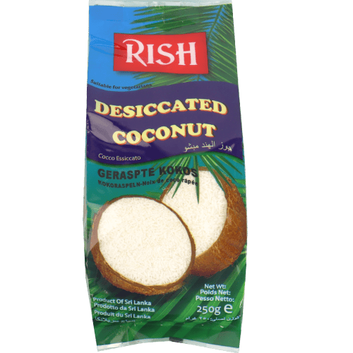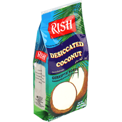 جوز هند مبشور (مجفف) من ريش 250غ، مناسب للحلويات والخبز والتزيين ويعطي نكهة جوز الهند الغنية.