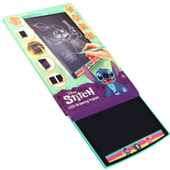 جهاز رسم للأطفال بواجهة ستتش من ديزني مع شاشة LCD، يمكن الأطفال من الرسم والكتابة والمسح بسهولة. مزود بقلم ولوحة قابلة لإعادة الاستخدام دون الحاجة لأوراق أو حبر. المكونات الرئيسية: شاشة LCD، بلاستيك، إلكترونيات.