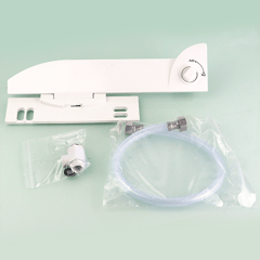 شطاف مثبت على مع ضغط قابل للتعديل ومجموعة تركيب كاملة تشمل خرطوم وحامل ووصلات ماء. خامة بلاستيك متينة.