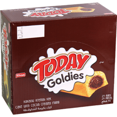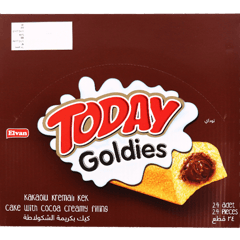 كيك إسفنجي لذيذ محشو بكريمة الكاكاو الناعمة. كل علبة تحتوي على 24 قطعة مغلفة بشكل فردي، مثالية للوجبات الخفيفة أو علب الغداء أو المشاركة. من إنتاج إلفان، العلامة التجارية التركية الموثوقة للحلويات. الكيك الذهبي الناعم من الخارج يخفي حشوة كريمة الشوكولاطة الغنية. المكونات الأساسية: دقيق القمح، سكر، بيض، حشوة كريمة الكاكاو، زيوت نباتية.