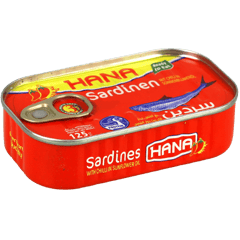 سردين معلب جاهز للأكل محفوظ في زيت دوار الشمس مع قطع فلفل حار ليمتاز بطعم قوي وغني، ويعد مصدرًا جيدًا للبروتين وأحماض أوميغا 3 الدهنية. المكونات الأساسية: سردين، زيت دوار الشمس، فلفل حار، ملح.