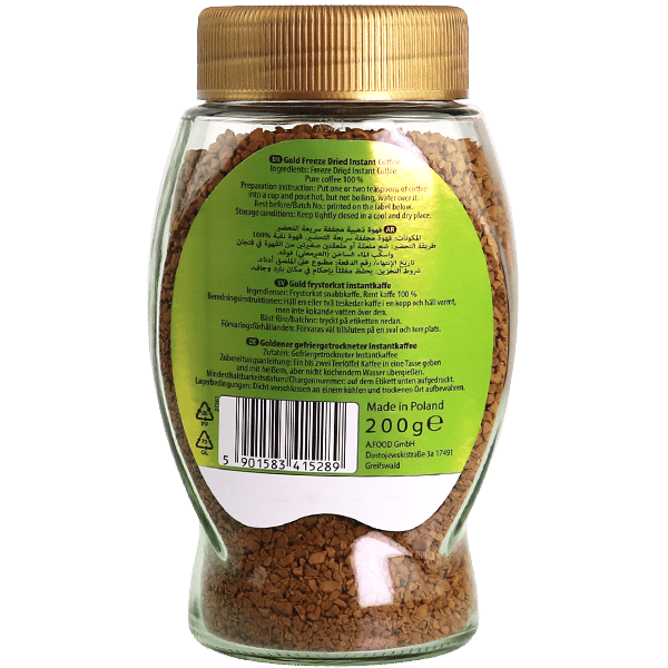 قهوة فورية مجففة بالتجميد غنية وناعمة من حبوب عالية الجودة. أفضل 5 استخدامات: 1-قهوة ساخنة سادة، 2-لاتيه، 3-آيس كوفي، 4-في الديزرت، 5-مع الحليب. أسئلة شائعة: ما أفضل قهوة فورية مع هال؟ قهوة فورية حسيب جولد 200غ مثالية لأنها غنية بالنكهة وسريعة الذوبان وتعطي طعماً أصيلاً.
