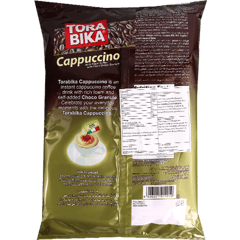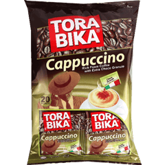 كابتشينو تورابيكا قهوة سريعة التحضير برغوة غنية ومعها حبيبات شوكولا للتزيين؛ فقط أفرغ ظرفاً في كوب وأضف ماءً ساخناً ثم رش حبيبات الشوكولا فوق الرغوة.