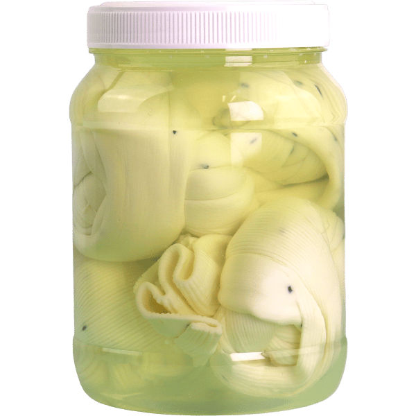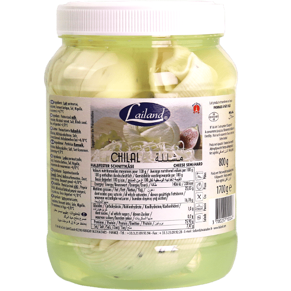 جبنة مشللة (شلل) من لايلاند بمرطبان 1700غ، قوامها نصف قاسي ومناسبة للتقطيع أو التفصيص/السحب لخيوط حسب الوصفة.