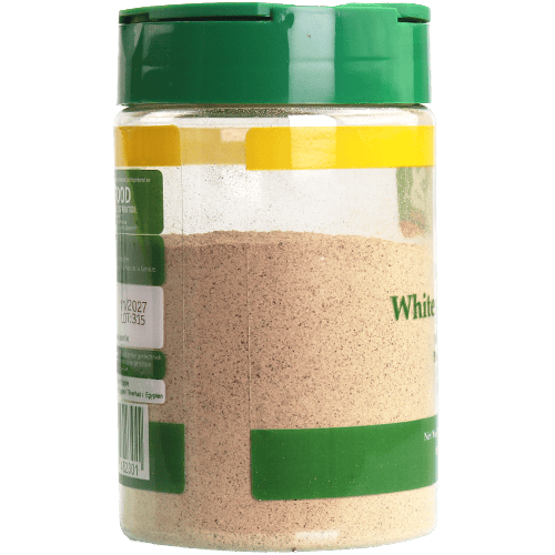 فلفل أبيض مطحون يعطي حرارة خفيفة ونكهة فلفلية لطيفة، ويفضّله كثيرون في الأطباق الفاتحة اللون مثل الشوربات والصلصات البيضاء والبطاطا المهروسة لأنه لا يترك نقاطاً سوداء.