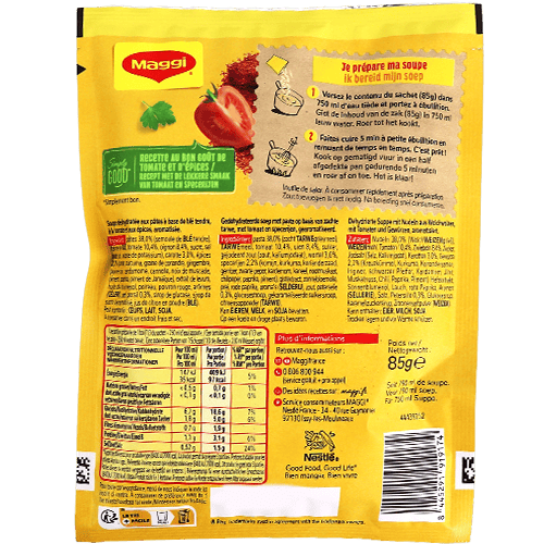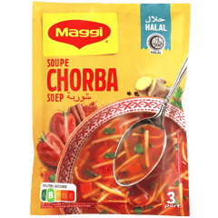 شوربة شربة من ماجي حلال، كيس 85غ ويكفي تقريباً 3 حصص، سهلة وسريعة التحضير في البيت.