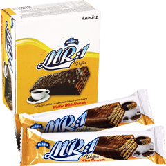 ويفر مقرمش بطبقات رفيعة مغطى بالشوكولاتة ومحشو بكريمة بنكهة نسكافيه، معبأ في علبة تحتوي على 12 قطعة مغلفة بشكل منفصل ليكون سناك قهوة حلو وسهل التقديم.