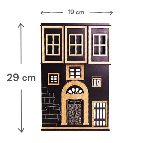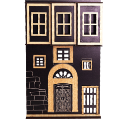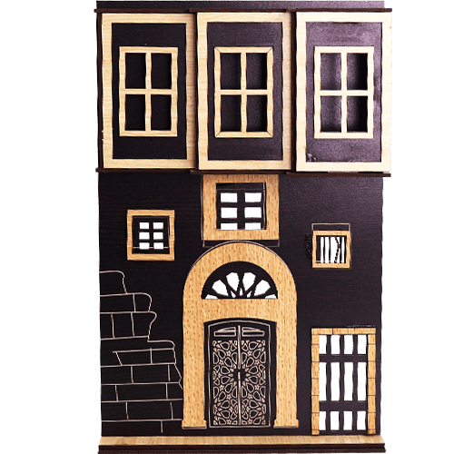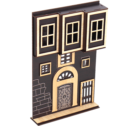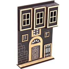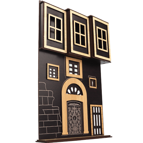 مجسم ديكوري يجسد واجهة بيت سوري قديم بتفاصيل معمارية تراثية، بقياس تقريبي 29×19 سم، مثالي للعرض على الرف أو تعليق على الحائط أو استخدامه في ديكور زاوية شرقية مميزة.