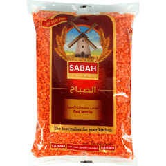 عدس أحمر مجروش عالي الجودة من علامة صباح، مثالي لتحضير الشوربات واليخنات والمهلّبات بفضل سرعة نضجه وقوامه الكريمي. المكون الأساسي: عدس أحمر مجروش 100٪.