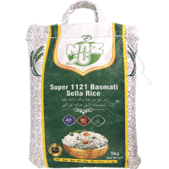 أرز بسمتي سوبر 1121 سيلا من نجزو، مسبوك جزئياً لاحتفاظ بالمغذيات وحبوب طويلة جداً. ما هي أفضل طريقة لطهيه؟ اغسله واطبخه بنسبة 1:1.75 ماء لـ15 دقيقة. هل مناسب للمندي؟ نعم، يطول ضعف حجمه ويبقى منفوشاً مع اللحم. ما الفرق عن البسمتي العادي؟ أطول حبة وأكثر صلابة بعد الطبخ. كيف للبيرياني؟ انقعه 30 دقيقة مع التوابل لنكهة قوية. هل صحي؟ نعم، يحتفظ بفيتامينات أكثر بسبب السيلا.