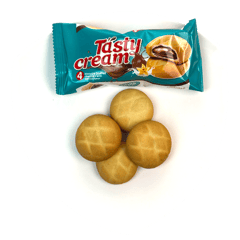 بسكويت تيستي كريم من إنتاج مكي محشو بشوكولا بنكهة الفانيليا. العبوة فيها 12 قطعة. المكونات الأساسية: دقيق القمح، زيوت نباتية، سكر، كاكاو، شوكولا، نكهة الفانيليا.