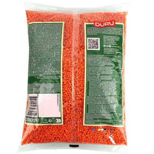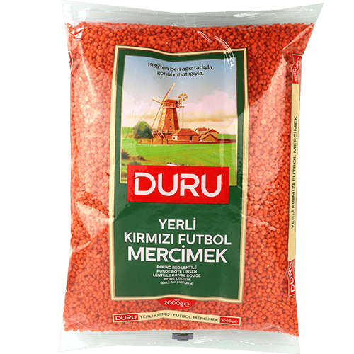 عدس أحمر حب (فوتبول) من دورو، مناسب للشوربات واليخنات وكفتة العدس لأنه يعطي قواماً ممتازاً وطعماً غنيّاً بعد السلق.