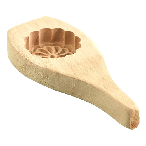 قالب معمول خشب بنقشة وردة لتشكيل المعمول وإعطاء شكل مرتب وزخرفة واضحة، المقاس 23×5 سم.