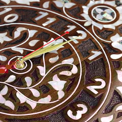ساعة حائط خشبية مطعّمة بالصدف الطبيعي 32×49 سم