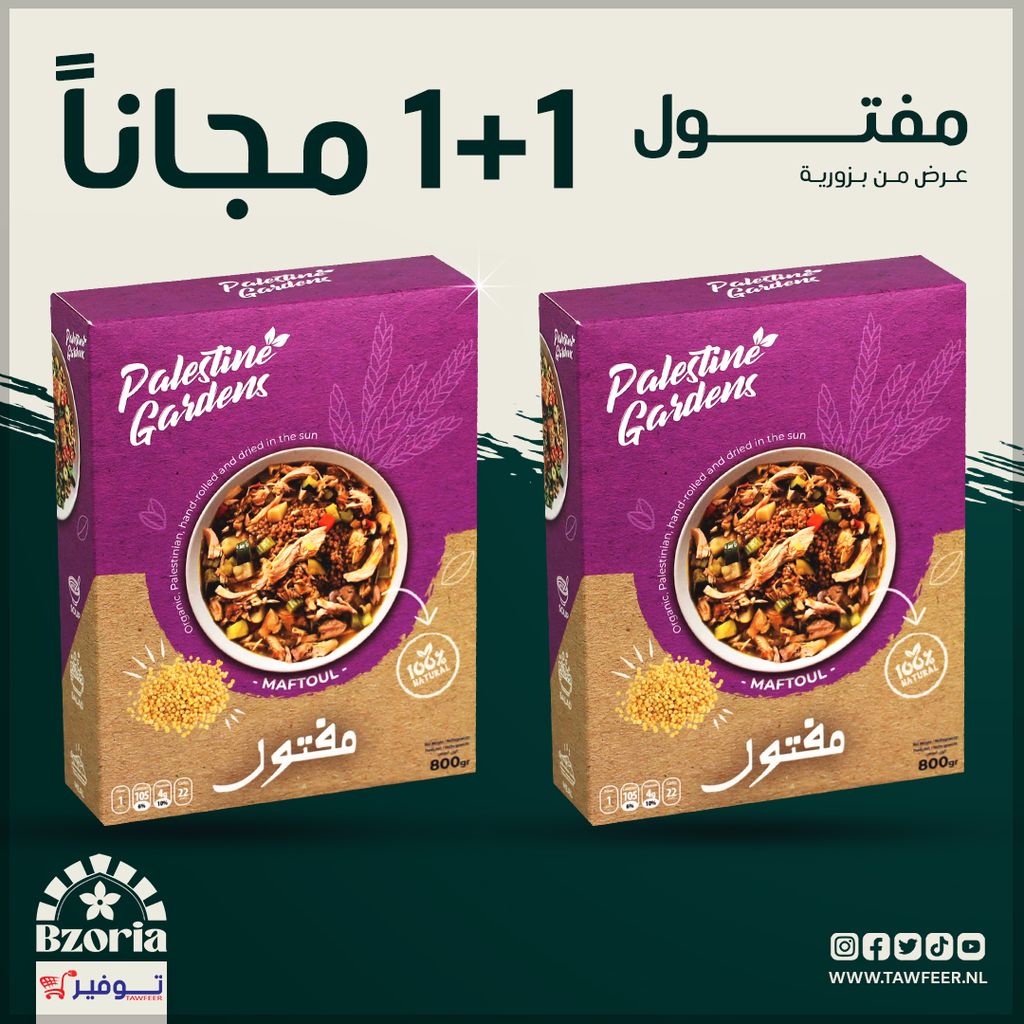 694e9dbd17dc500ec1f85e79 عبوتين مفتول فلسطيني فلسطين جاردن 800غ https://www.tawfeer.nl/s/629be774d1d5b8b85d68bede/694e9dd920404151c37478f9/maftoul-01.jpg