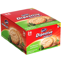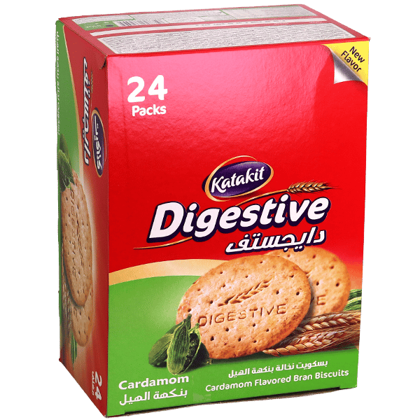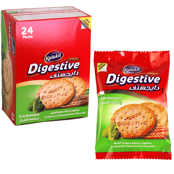 بسكويت ديجستيف بران بنكهة الهال من كتكيت، مقرمش وعطري غني ألياف. ما هي أفضل طريقة للتقديم؟ مع الشاي الأخضر أو القهوة لنكهة شرقية. هل يساعد على الهضم؟ نعم، الألياف والنعناع يهدئان المعدة. كم عدد الباقات؟ 24 باك في العلبة للعائلة. هل النكهة قوية؟ متوازنة مع البرن لمذاق مميز. ما الفرق عن الأصلي؟ إضافة هل لعطر عربي أصيل.