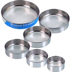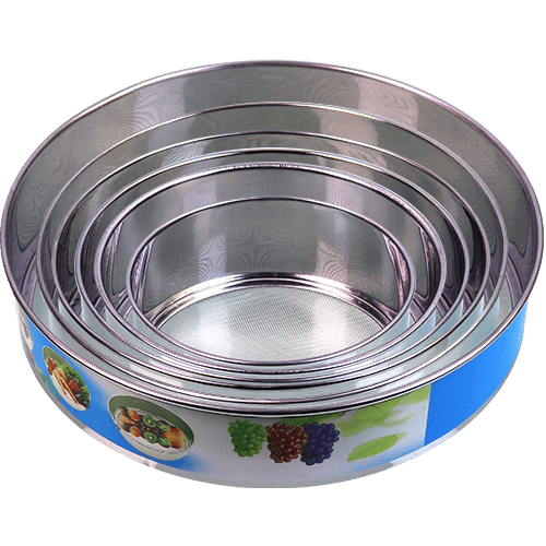 طقم من المصافي الدائرية المصنوعة من ستانلس ستيل عالي الجودة، مناسبة لنخل الطحين أو الأرز أو البهارات أو غسل الخضار والفواكه. يتضمن عدة مقاسات للاستعمال المتعدد في المطبخ. المنشأ: الصين. المكون الأساسي: ستانلس ستيل.