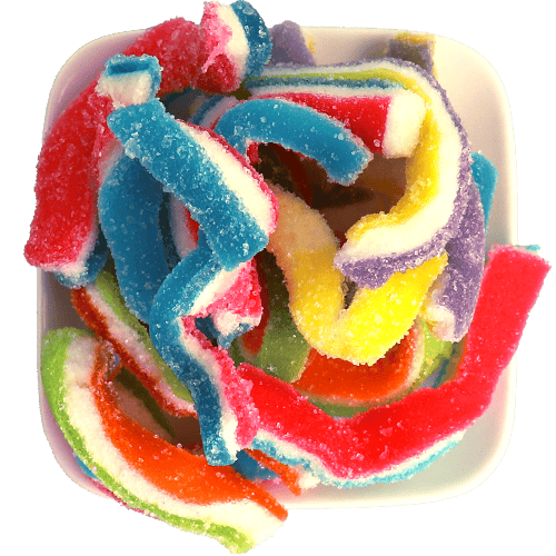 جيلي ملون على شكل شرائط/حبال ومغطى بالسكر، طعمه فواكه وقوامه طري ومناسب للضيافة والكاندي بار. أفضل 5 استخدامات: للضيافة مع الشاي والقهوة، للكاندي بار بالمناسبات، لتوزيعات الحفلات وأكياس الهدايا، كسناك حلو خلال اليوم، لإضافة ألوان داخل بوكس سكاكر/حلويات مشكلة. أسئلة شائعة: هل هو حامض؟ غالباً يكون بطعم فواكه مع سكر وقد يكون حامض خفيف حسب الدفعة. كيف أحفظه؟ بمكان بارد وجاف وبعلبة محكمة. هل يناسب الأطفال؟ نعم كحلوى ملونة محببة (يفضل الإشراف للصغار جداً). هل يلتصق ببعضه؟ ممكن إذا كان الجو حار؛ الأفضل حفظه محكم وبعيد عن الحرارة. هل يصلح للمناسبات؟ نعم ممتاز لأنه ملون وسهل التقديم.